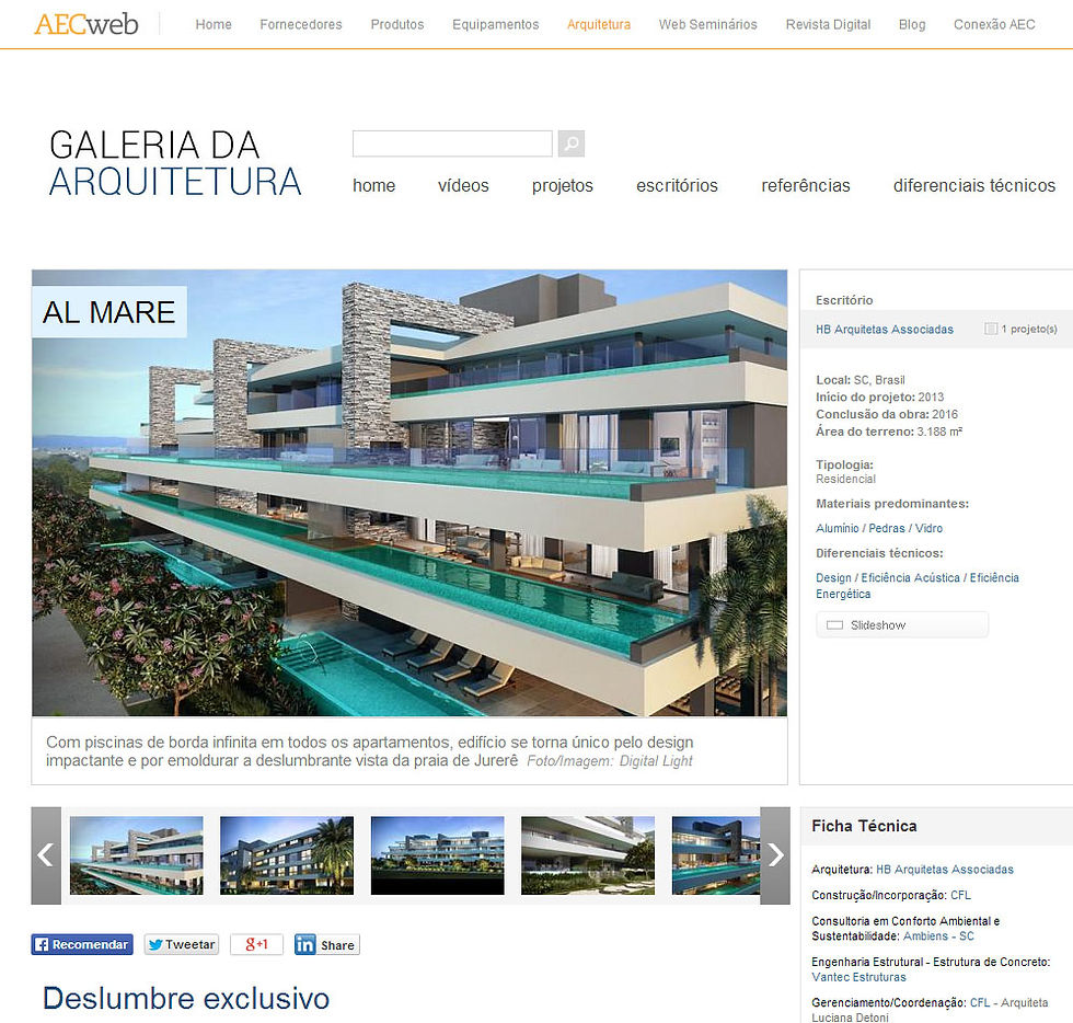 Matéria publicada na Galeria da Arquitetura sobre o projeto do Al Mare.